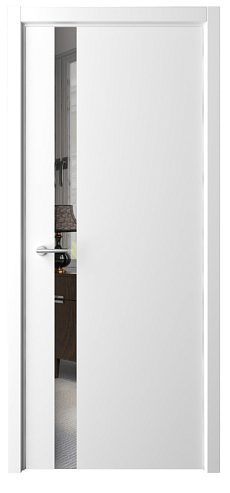 Дверь Геометрия-5 ширина 80 см Белый Эмаль Стекло белое кромка В цвет полотна в Новосибирске