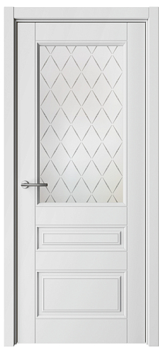 Дверь Классика-3 ширина 90 см Белый Эмаль Стекло мателюкс "Лорд матовое" кромка В цвет полотна в Новосибирске